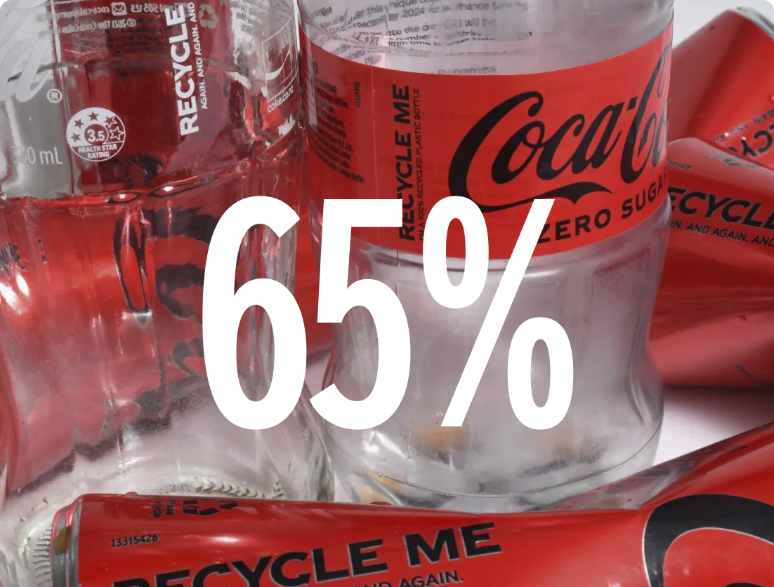 In Australia all our soft drink and water plastic bottles under 1 litre are made from 100% recycled plastic (excluding caps and labels).