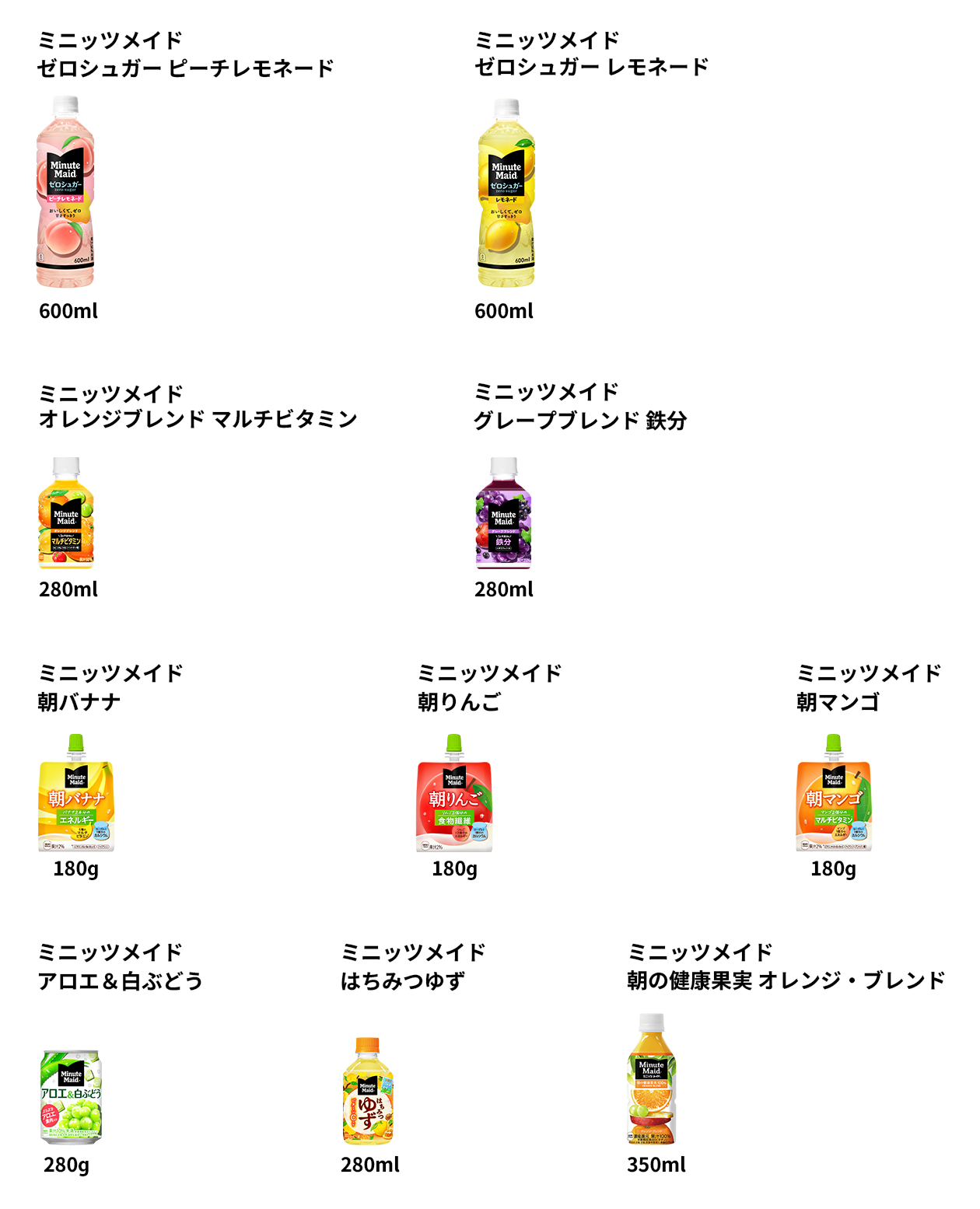 ミニッツメイドのラインナップ